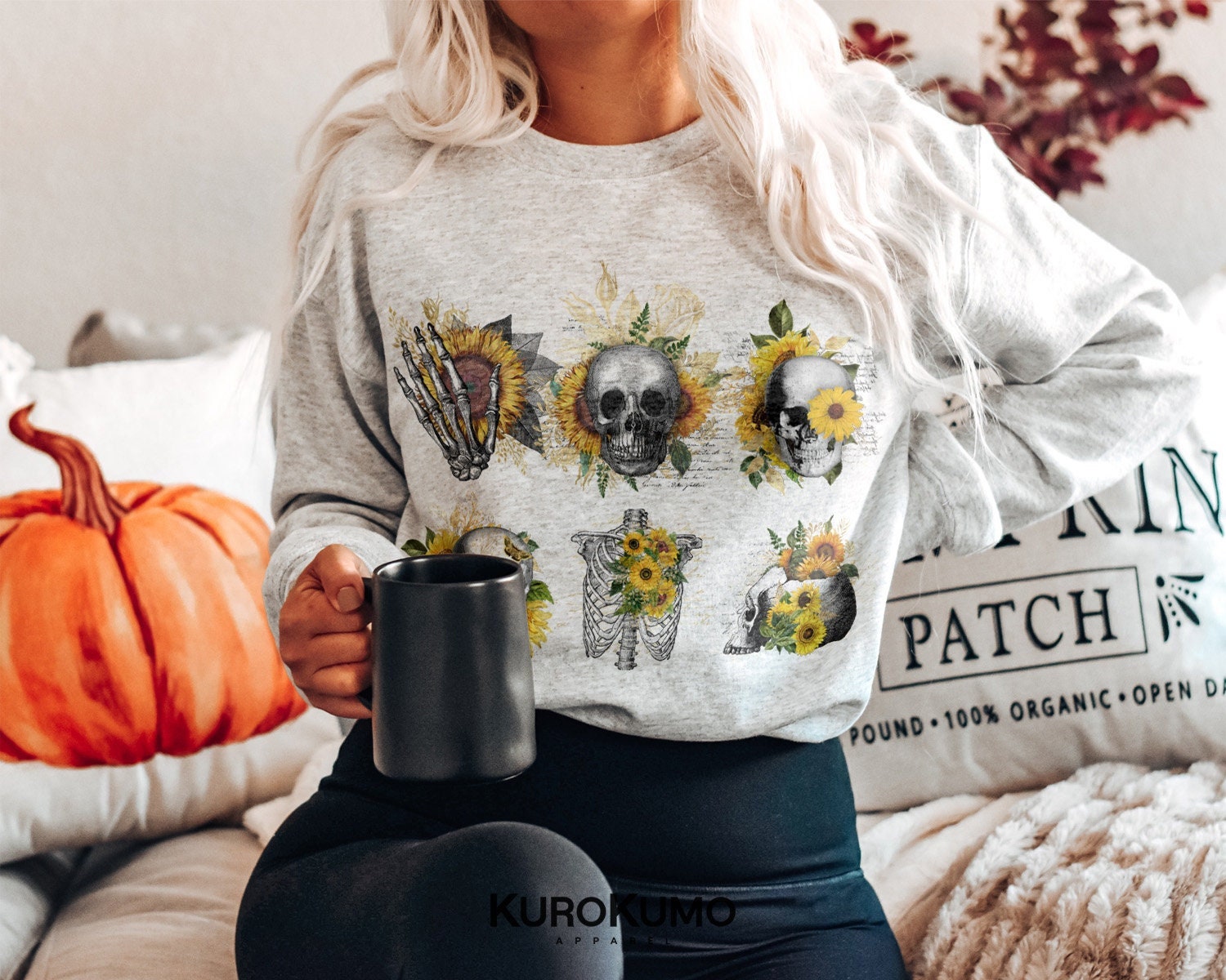 Calavera Sudadera Girasol Sudadera Esqueleto Sudadera Botanica Etsy Mexico