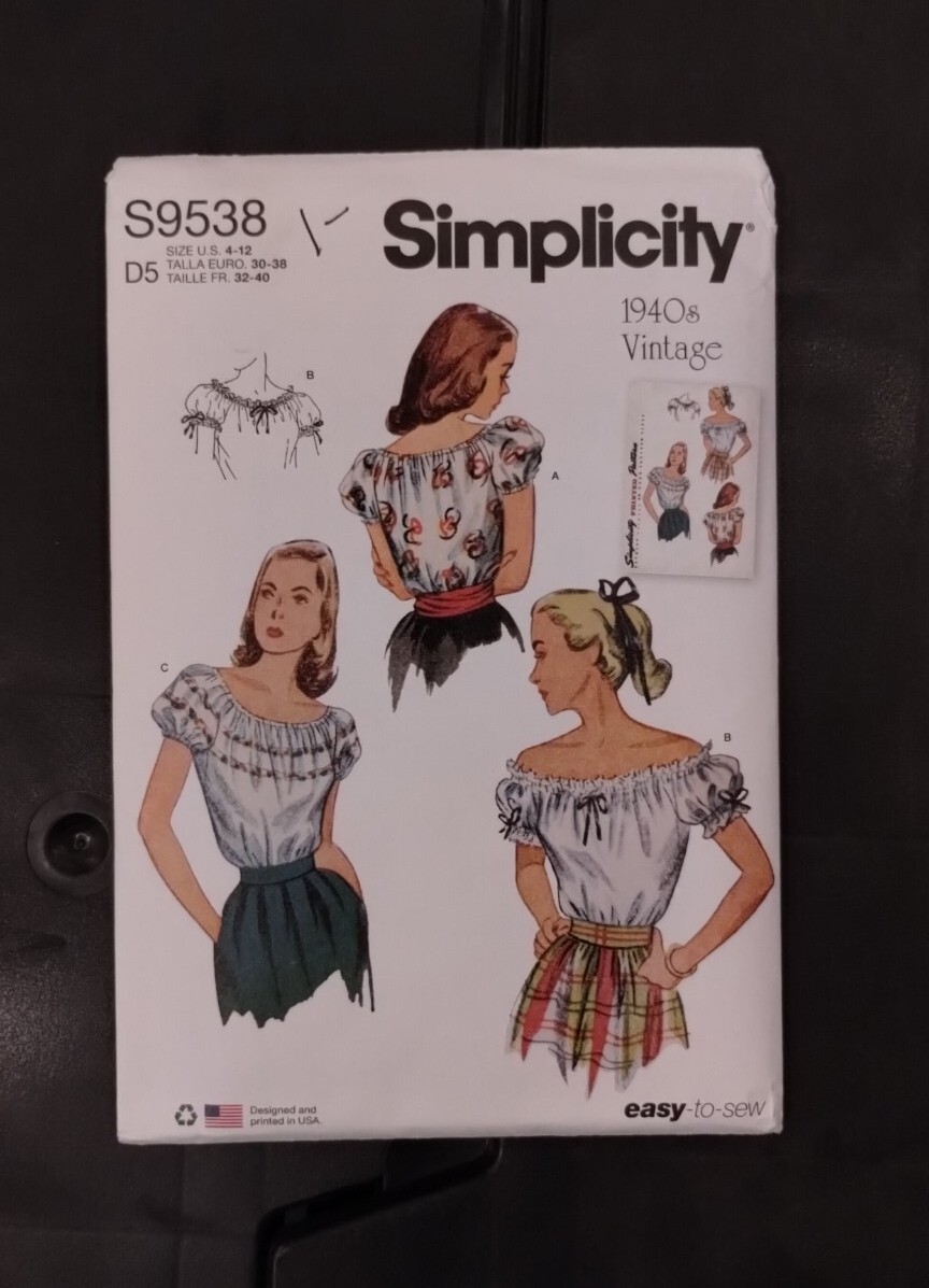 S9538 Sewing Pattern Simplicity Vintage 1940s Blouse Sizes 4 12 Easy To Sew Ebay